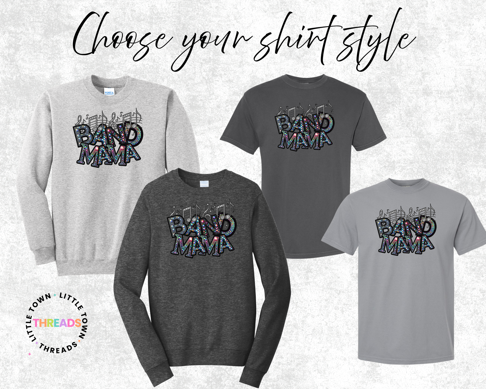Faux Rhinestone Band Mom Shirt - Don't see the color shirt you want? Just email us!