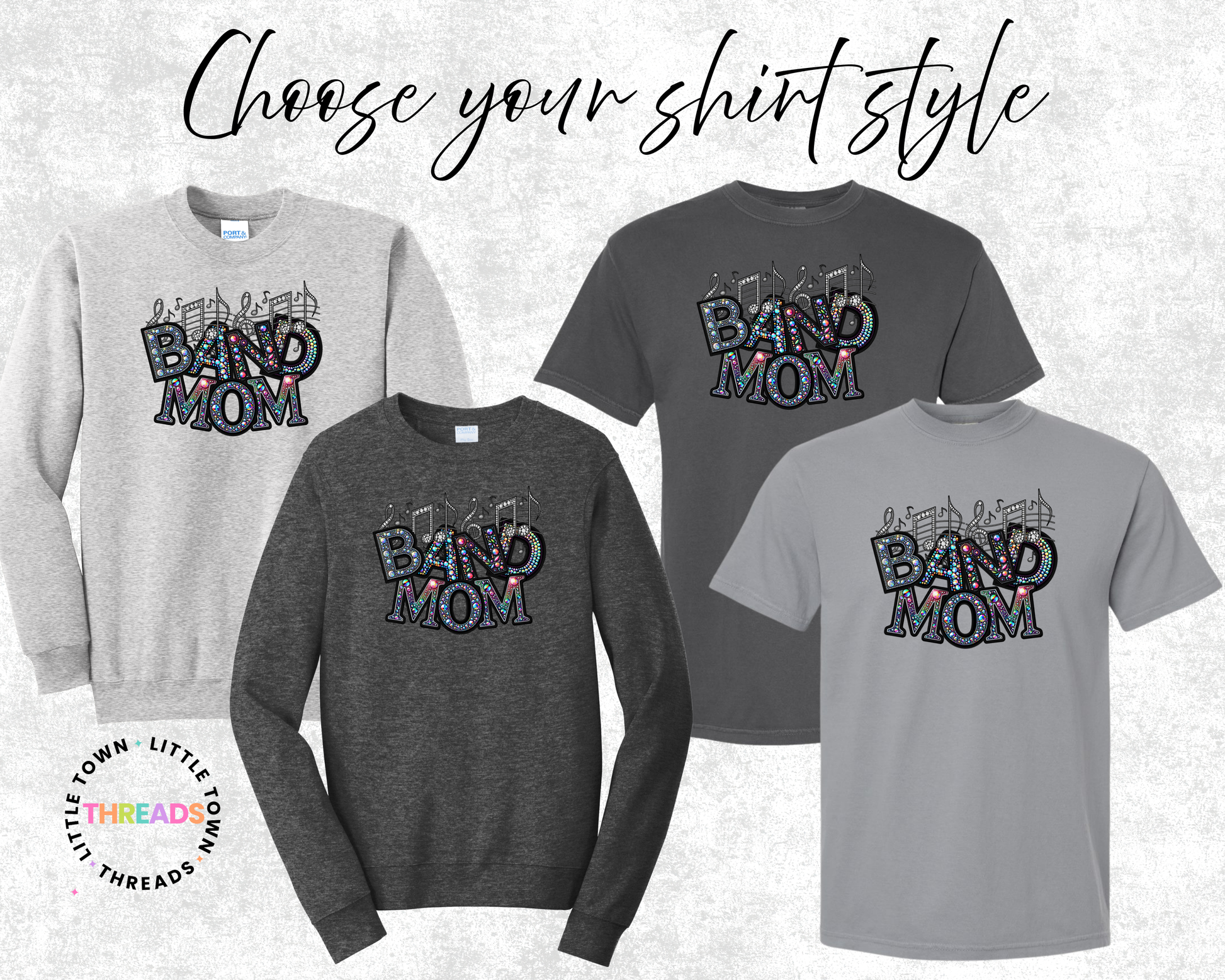 Faux Rhinestone Band Mom Shirt - Don't see the color shirt you want? Just email us!