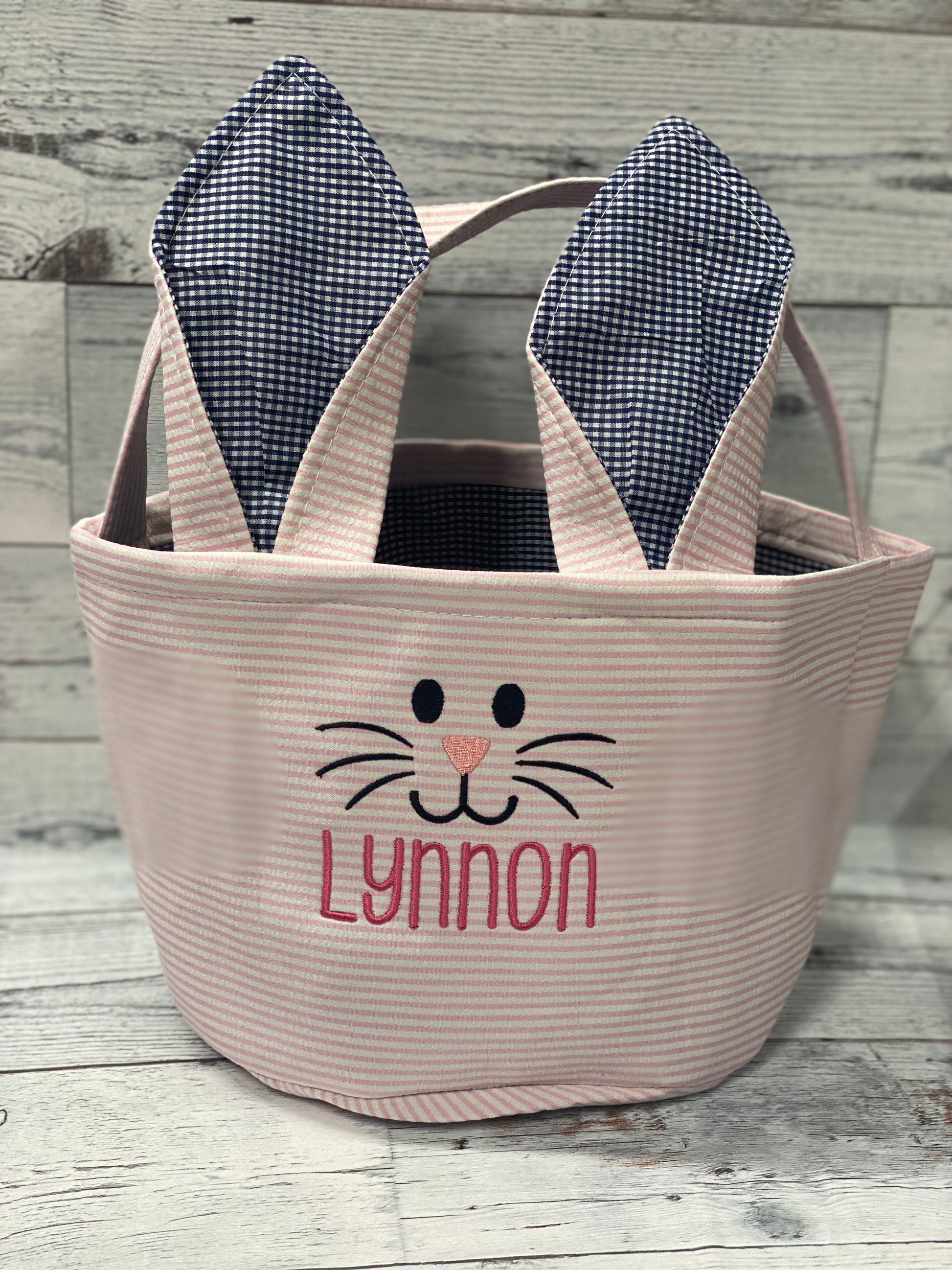 These Easter bucket/bags are super cute for any occasion but great for EASTER! They are personalized with your little one's name and can be used year after year. These totes are specialized with embroidering of a personalized name or a monogram. Be sure to look at all listing pictures! Name or monogram and bunny face are stitched on the front of the basket as shown in the picture. If you choose monograms, standard monogram for girls is First Letter, Last Name Letter, Middle Name Letter (FLM); Boys is First Letter, Middle Name Letter, Last Name Letter (FML). Stacked Monogram is First Initial and Middle initial on the left, last name on right. Please make sure to put the initials in the exact order you would like them, as that's how they will be stitched. If in doubt, please message me before ordering :)