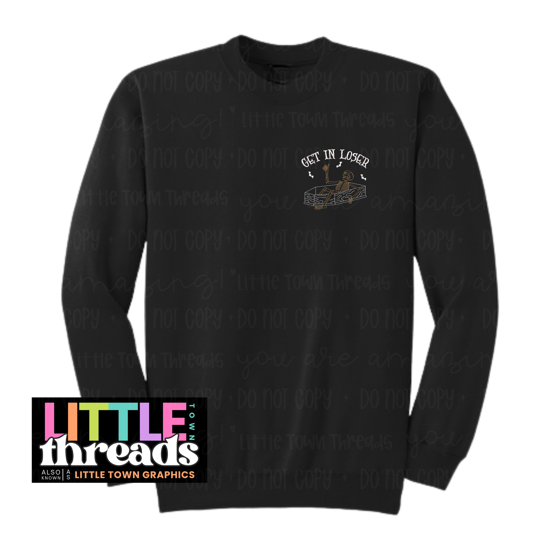 Show off your fun side with the "Get in Loser" embroidery design, available as a T-shirt, crewneck, and hoodie. The T-shirt features a cool left chest or full design, perfect for a subtle yet cheeky statement. Whether you’re lounging or out with friends, these comfy pieces add a playful vibe to your wardrobe. The t-shirt is only available as a left chest design